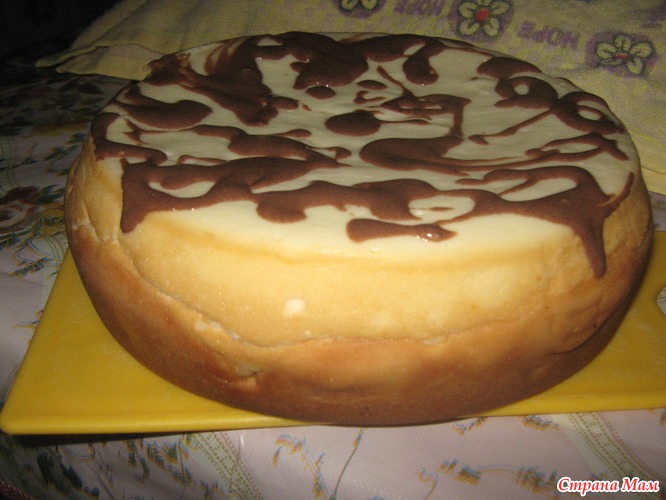 Если добавить какао в часть творожной массы и выкладывать попеременно -