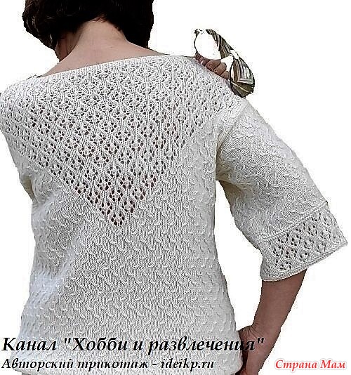 Лаконичная модель с ажурной спинкой + схемы и описание. Спицы.