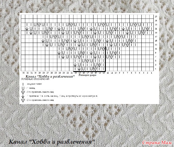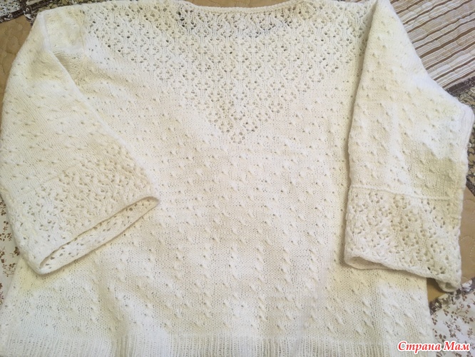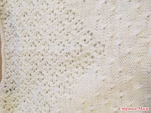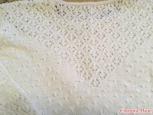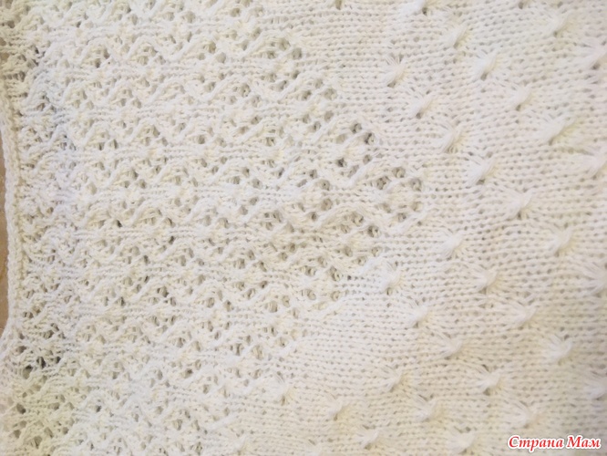 Спинка. Начать вязание аналогично передней части. На высоте 80 ряда вязать ажурный узор по схеме. Постепенно расширяя его на всю ширину полотна.