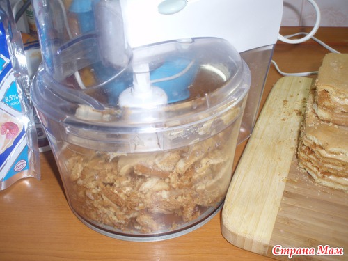 Даем постоять пару часиков, чтобы он припитался, потом ножом обрезаем края, делаем из этих кусочков в комбайне "картошку".