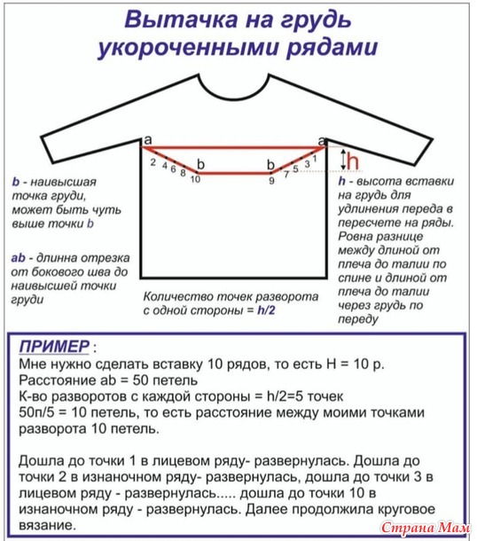 На 15 раппортов, круговые спицы 3.25, в две нити. После кокетки - азиатский росток, подрезы, а потом вытачка на груди. Использовала принцип с этой картинки.