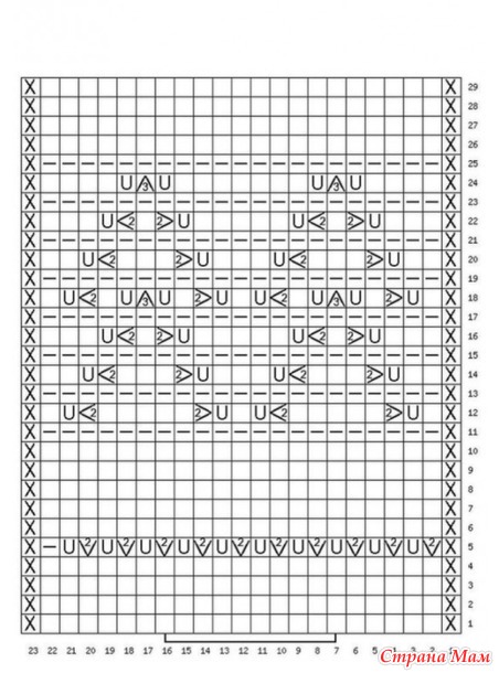 Итак, круглая кокетка сверху на 15 раппортов. Вот по этой схеме.