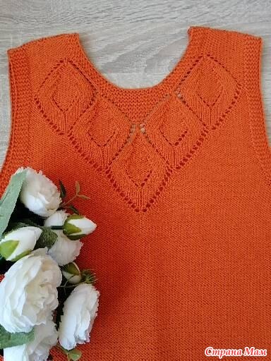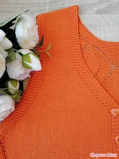 Вопрос, что вязать оранжевого, в этом месяце у меня не стоял. Был заказ на топик как раз оранжевого цвета. Заказчица выбрала вот такую модель