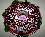 дать салату пропитаться в течении 5 часов, и только потом вынуть стакан. Гранатовый браслет готов.