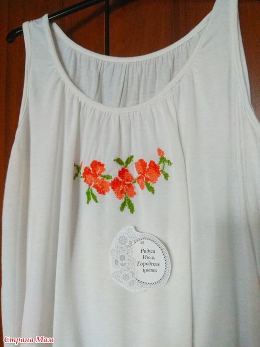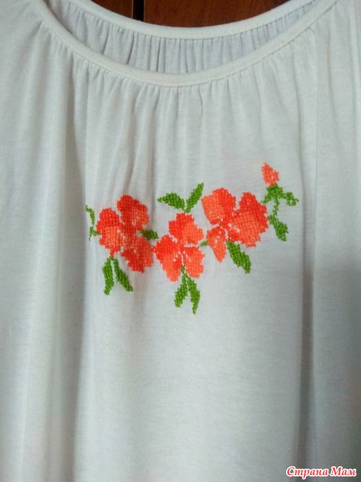 Решила сделать себе спокойный месяц, чтобы подогнать остальные хвосты и потому просто украсила маечку вышивкой.