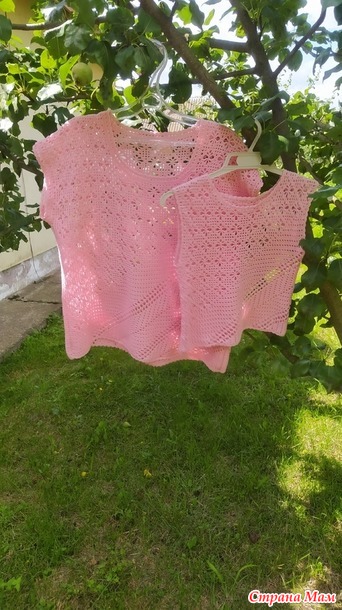 Поскольку у меня в наличии было целых пять моточков пряжи, то на свет родилось ещё 2 топа в стиле Family look.