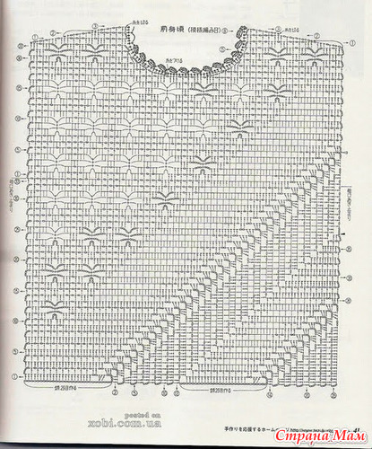 Описания никакого нет. Связала два прямоугольника, только со скосами для плечей. Обвязала горловину, рукава и низ топа, по низу вставила спандекс. Топ достаточно свободный, хотя на фото кажется что облегает тело. Узор: первый ряд ССН, второй - те же столбики, только перекрещенные, т.е. сначала вяжется второй столбик, а потом первый.