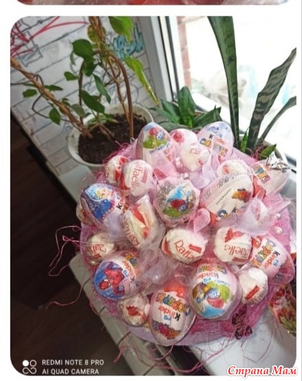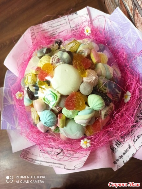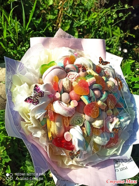 Единственное, не стала бы никогда покупать (и не покупаю, в общем-то) букеты, где еда не в обертке - зефир, сухофрукты (хотя тут спорно, их же помыть можно), фрукты.
