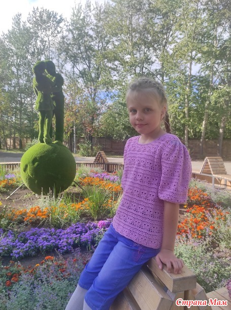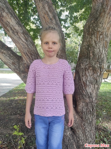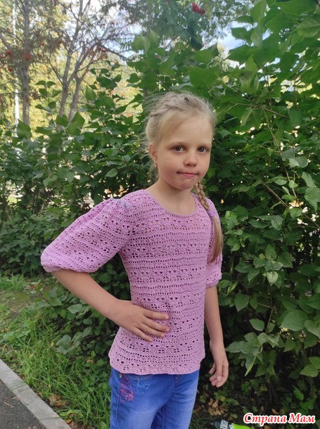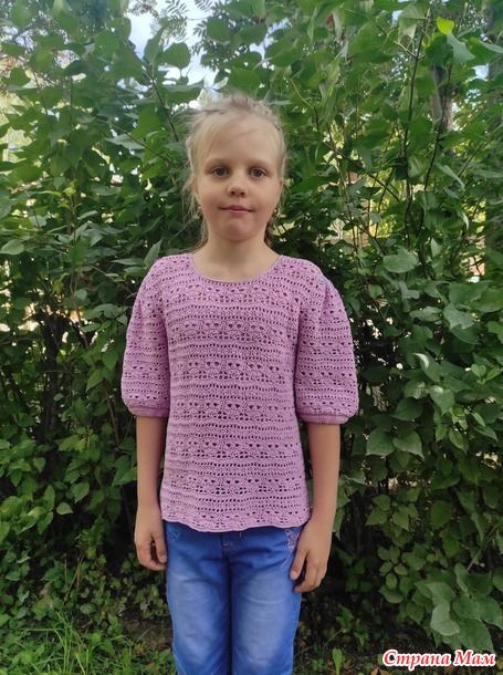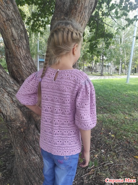 Блуза "Офелия" связана из пряжи Пехорка "Ажурная" крючком 2,3 мм. Расход пряжи 250 г на размер 140-34 .