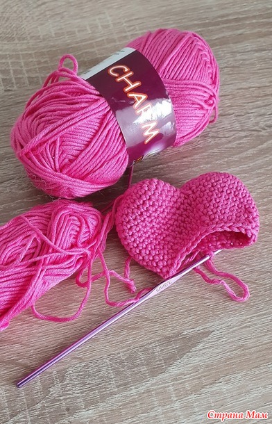 Сердечко связано из пряжи Vita Cotton Charm, хлопок, 50 г/106 метров, крючок 3 мм. Какое-то время назад мне достался от коллеги целый пакет разнообразного хлопка. Она переезжала в другой регион и отдала мне свои запасы. Там есть даже какая-то советская пряжа, с этикетками