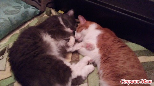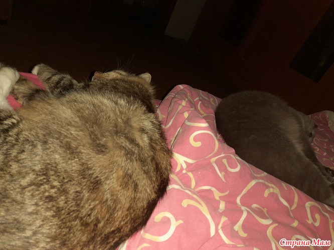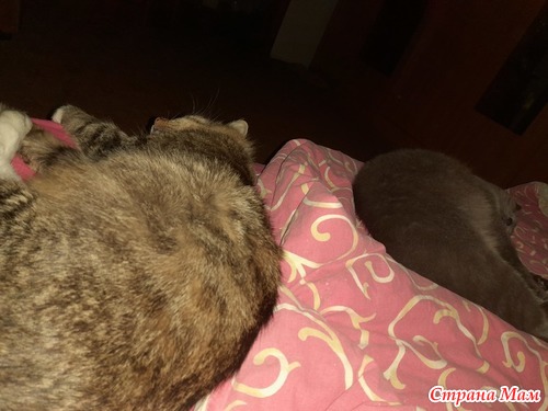 То, что мне приходится ютится на краешке, их совершенно не волнует. Даже сдвиг кота с горизонтали в вертикаль не спасает ситуации... возврат в горизонталь неизбежен!