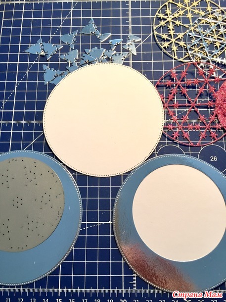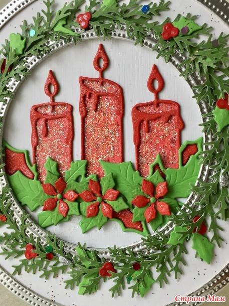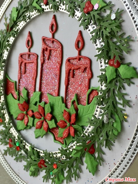 Не знаю , нужно ли комментировать. Снизу нож - снежинка. Вырезала на зеркальной бумаге, приклеила на простую бумагу белую плотн.220гр.