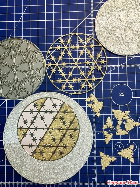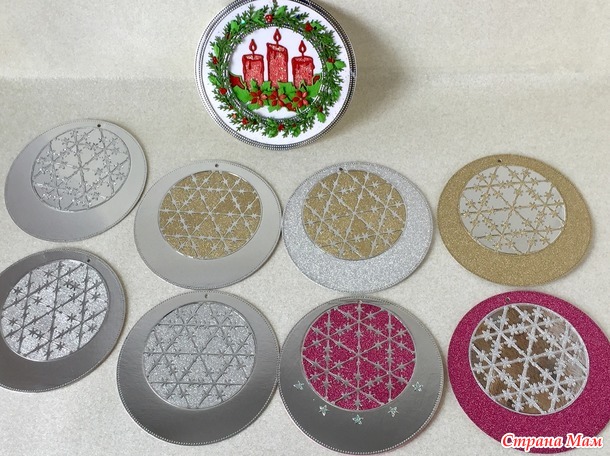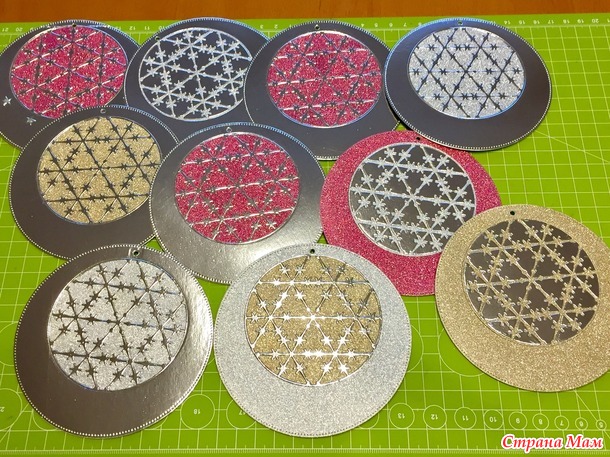 Размер подвесок 12 см. Бумага зеркальная плотн.220гр. и мелкозернистая цветная с блёстками (не знаю как она у вас называется)