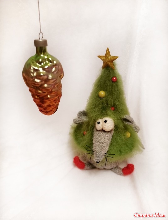 Домовёнок. Декабрь. Мышь-Ёлка спицами.