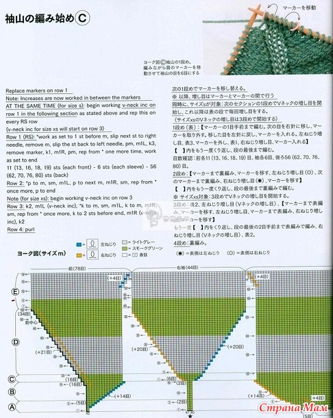 Мне только показалось странным, что внизу проймы рукава нет прибавок (обвела это место на схеме). Но я их сделала. Подрезы есть.