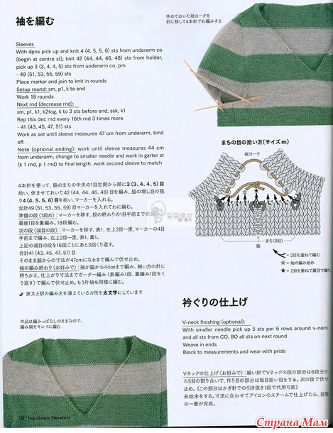 Когда пряжи немного, логично вязать сверху вниз. Круглые кокетки у меня уже есть, реглан не хотелось. И вспомнила я, что у меня сохранен японский журнал с моделями Top-Down, и решила попробовать что-то типа «реглан-погон».