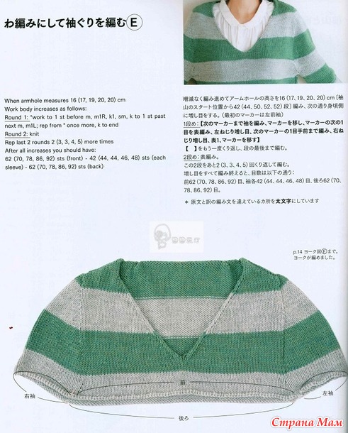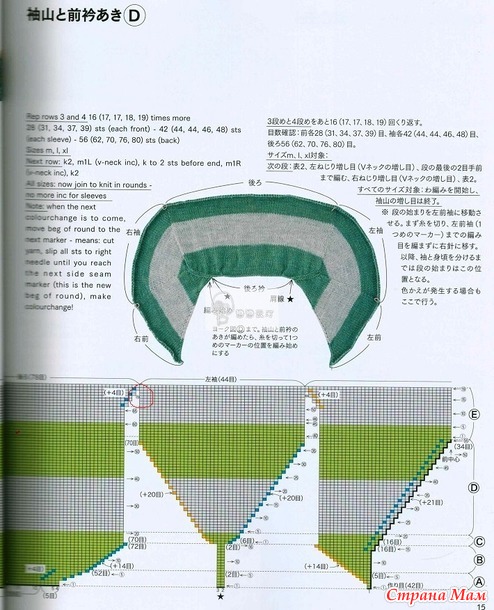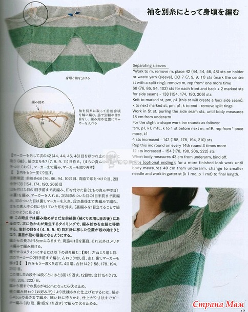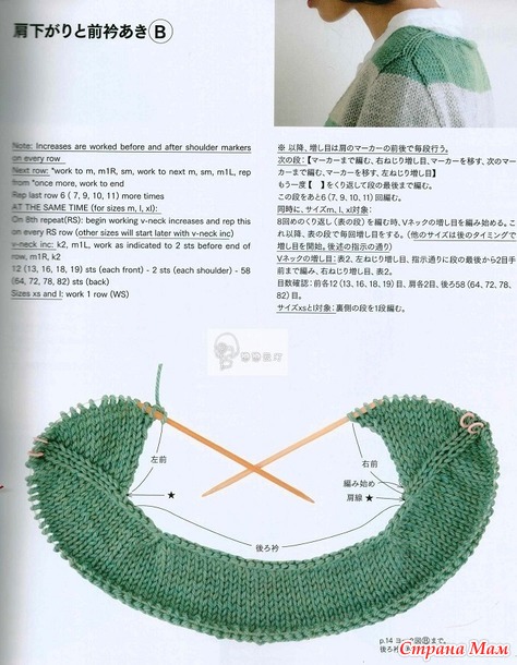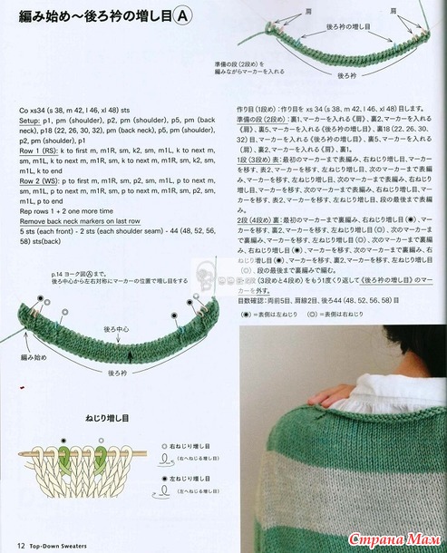 Когда пряжи немного, логично вязать сверху вниз. Круглые кокетки у меня уже есть, реглан не хотелось. И вспомнила я, что у меня сохранен японский журнал с моделями Top-Down, и решила попробовать что-то типа «реглан-погон».