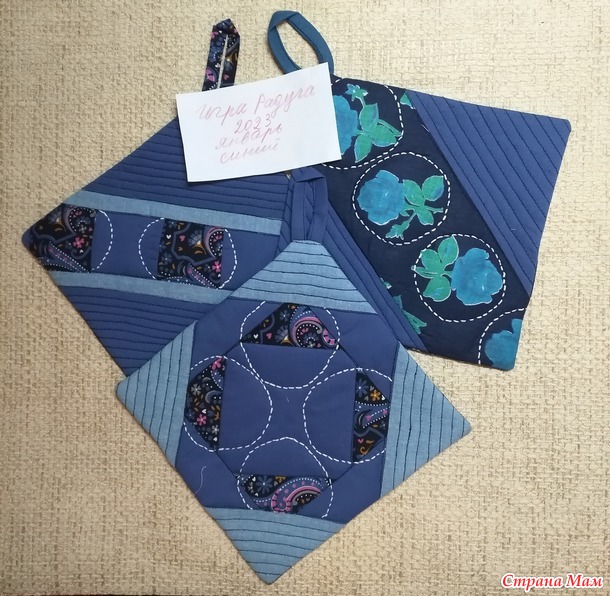 Январь- цвет синий. Я сшила прихватки в технике пэчворк.