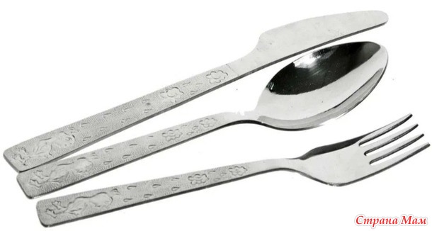 3. Вилки, ложки и другие столовые приборы. Я ложки узнаю по рисунку ручки. Все делается из нержавейки. В советское время завод делал приборы с деревянными ручками под хохлому. Был ещё детский набор утёнок и ложки с гравировкой.