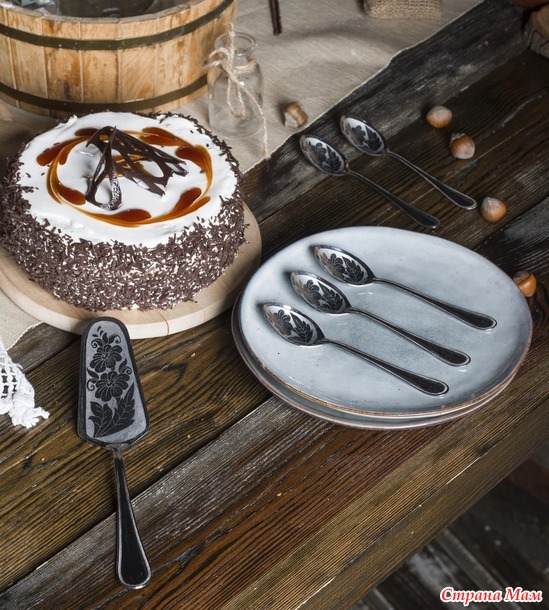 Столовые приборы у нас из Павлова. Но детский набор с уточкой есть. А у свекрови есть приборы с хохломой. Интересно про филигрань, не знала, что в области у нас такую красоту делают