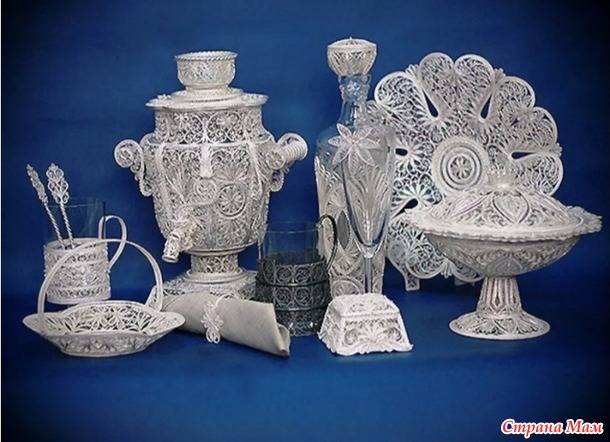 Там изготавливают филигрань или скань из серебряной проволоки.