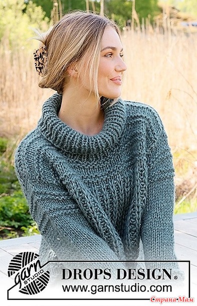 Объемный свитер с разрезами из пряжи DROPS Wish связан снизу вверх английской резинкой и платочной вязкой. Размеры S - XXXL.