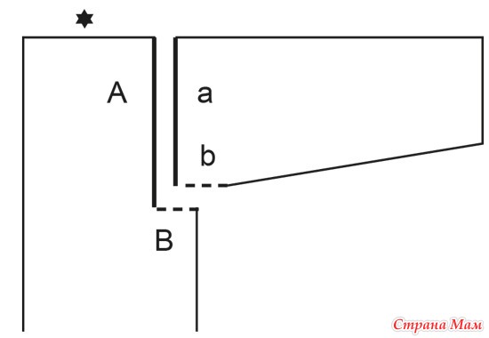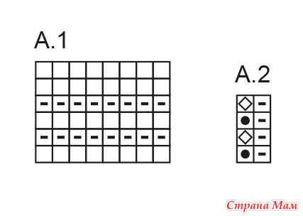 Когда высота детали будет равна 36-38-40-42-44-46 см, в следующем изнаночном ряду провязать все петли изнаночными, затем вязать по схеме А.1.