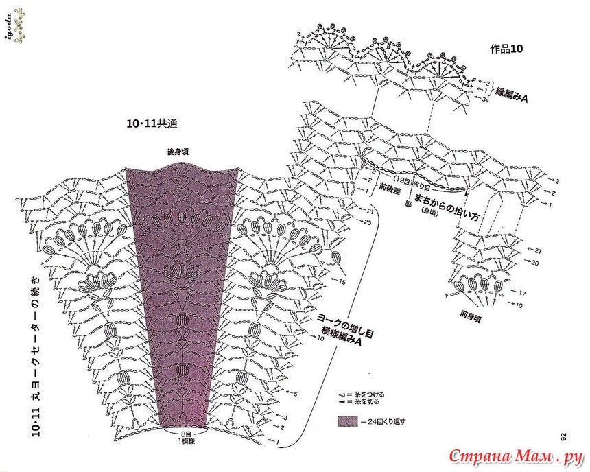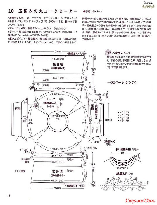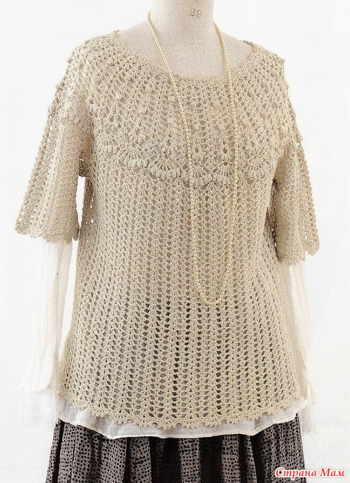 Пряжа хлопок 300 гр. Крючок 3/0 (кокетка) и 2/0 (подол и рукава.