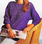 Эффектный лиловый джемпер с красивой ажурной кокеткой. Спицы.