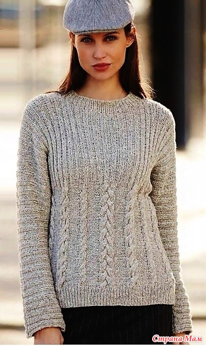Джемпер с косами. Спицы.