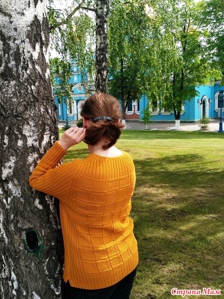 Поскольку свобода облегания умеренная, то, видимо, Вы делали вытачки. Но я их не вижу. Узор квадрат, что создаёт большие сложности для вязания вытачек. Или не делали? Узор в районе груди нигде не растянут!