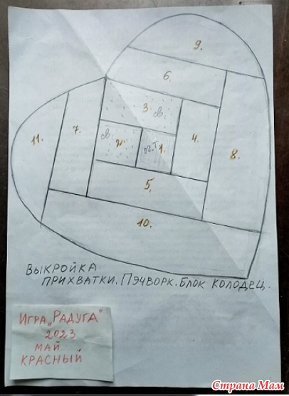 Игра Радуга 2023, май цвет красный. Прихватка пэчворк, блок Колодец.