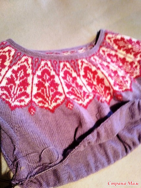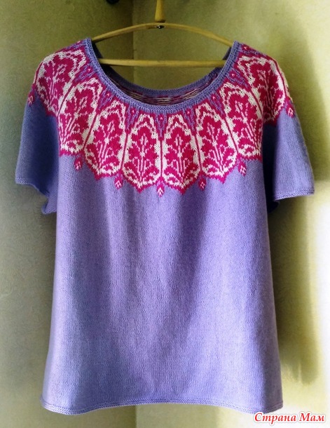 Было у меня примерно 150 грамм сиреневого хлопка (в 100 г 1500 м). Можно было связать очередной ажурный топик, но, по счастью, попалась мне на глаза такая вот модель:
