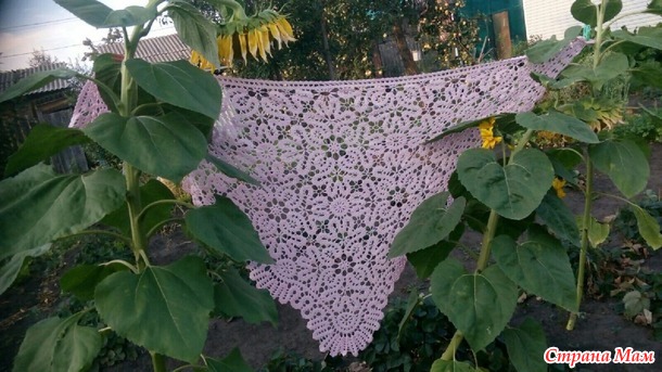 Вязала я шаль ирисом итальянским, 50/450, крючком 0,75.