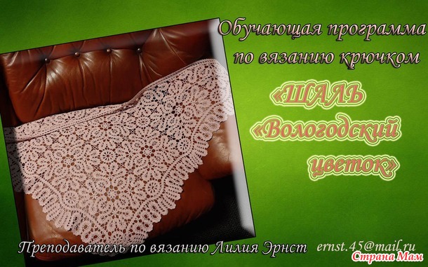 Мастер класс по вязанию крючком "ШАЛЬ"ВОЛОГОДСКИЙ ЦВЕТОК"