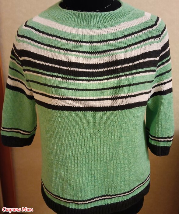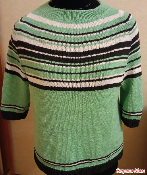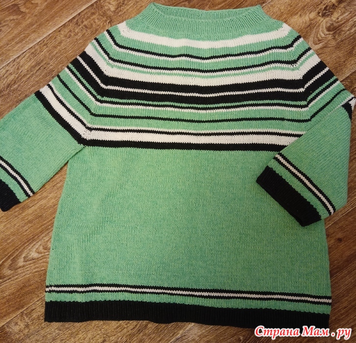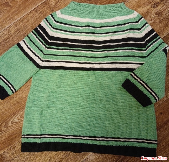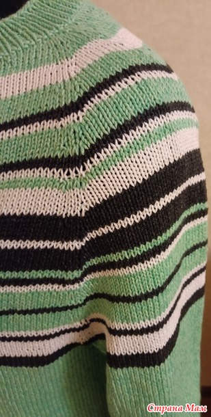 Со стороны рукавов добавляла по 1п каждые 3 ряда из протяжки вдоль регланных линий