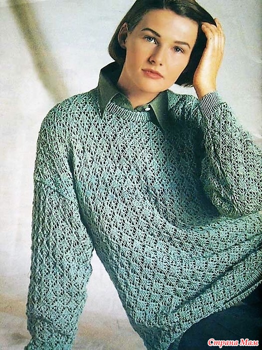 Ретро джемпер цвета зелёного тростника. Спицы.