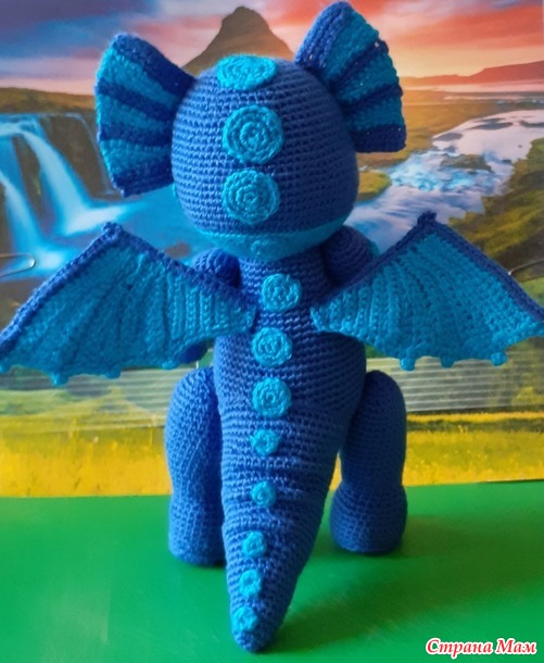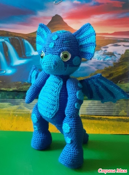 День добрый.девочки Связался у меня дракончик Аватар.. Вязала из Слонимской пряжи крючком 1.5. Высота игрунечки 22 см Поедет к моему правнуку Темочке Это сбоку А это хвостик и крылышки Читать полностью