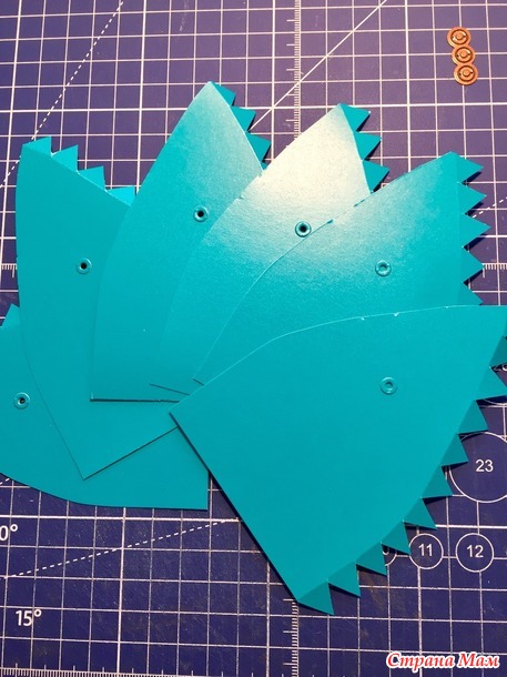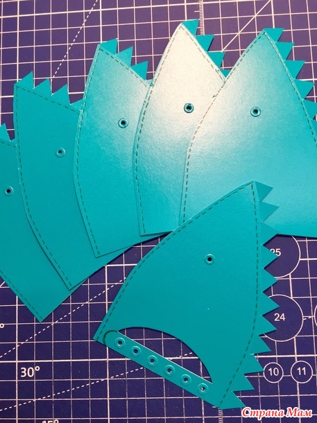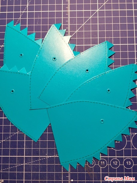 Дырки сделала ручным дыроколом, а на них приклеила... девочки не знаю как назвать их... в правом верхнем углу нож. У меня он идёт в наборе к детскому бодику.
