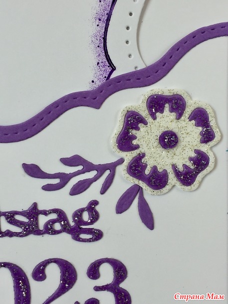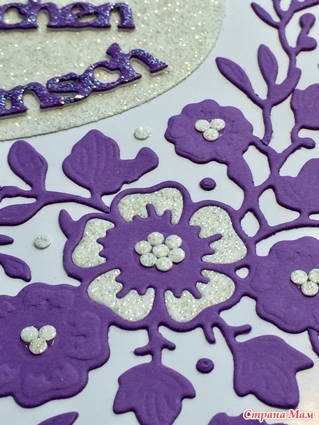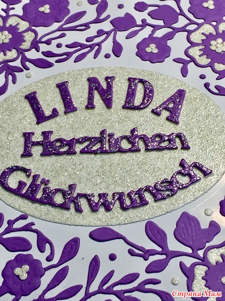 На буквы нанесла клей с блёстками сиреневого цвета.