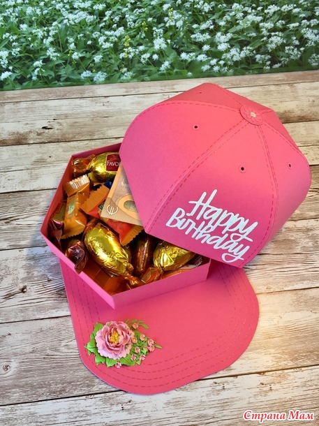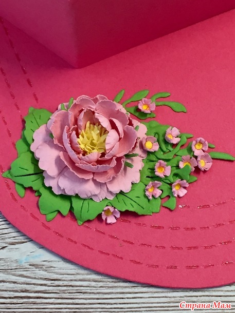 На видео (по ссылке над первым фото) у неё вырезается козырёк. Я в этот раз не стала его отдельно вырезать, просто на основе сделала строчку и приклеила коробочку. Смотрится ничем не хуже.