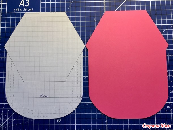 Чтобы основание было прочным, я вырезала три таких шаблона (плотность бумаги 270 гр.) и склеила между собой.