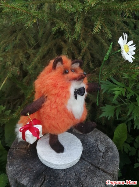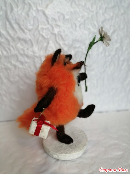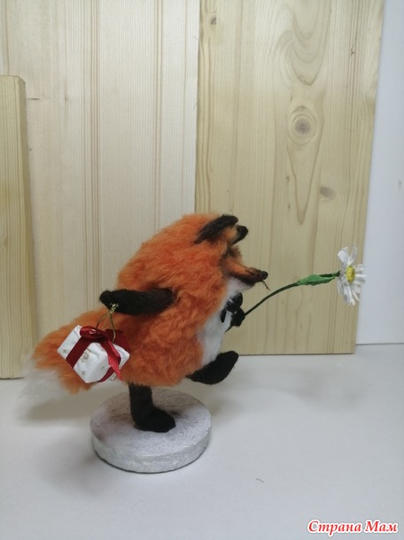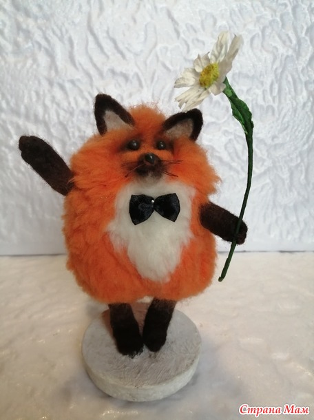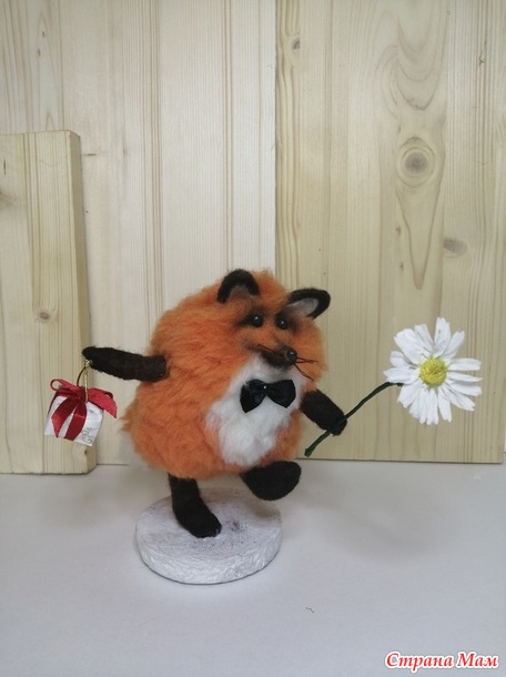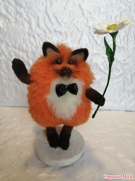 Вот такой лисенок у меня получился. Сделала из шерсти на половину свалян, на половину отшит)) Ромашка, кстати тоже сделана своими руками их холодного фарфора))