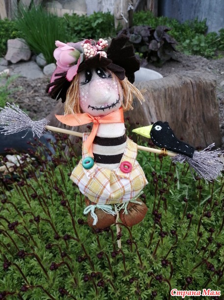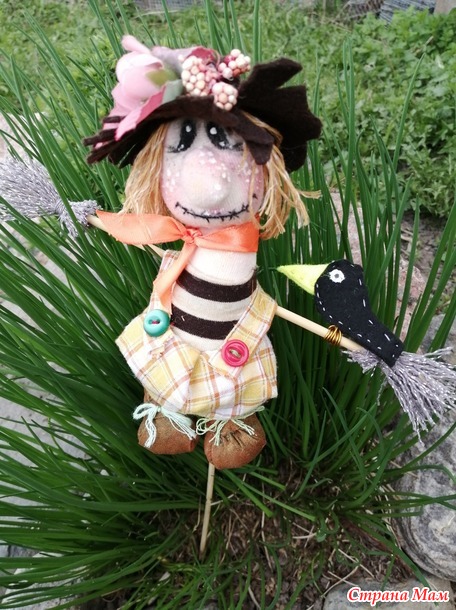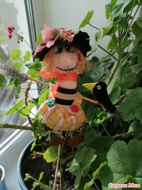 Пугало сделала из ткани, но ничего не кроила специально, если только носик