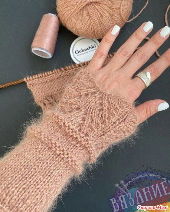 Чтобы это стало митенками - перехватите, соединяя между пальцев.