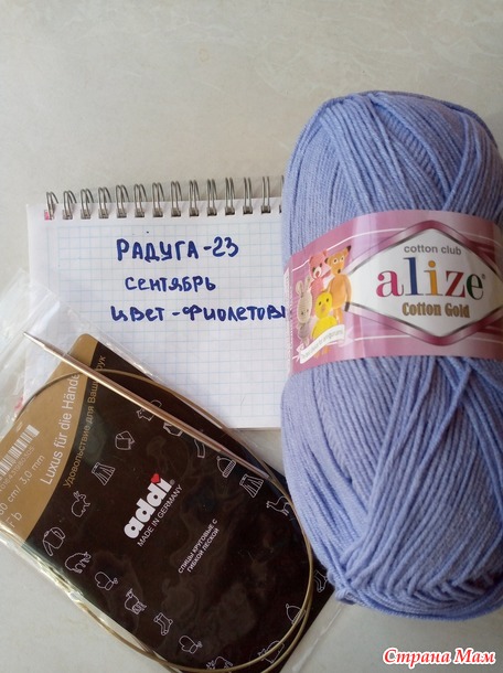 Доброе время суток! Мой сентябрьский отчёт. Когда Гена выбрал фиолетовый цвет, сомнений не было, будет платье для дочки. Представила материалы: пряжа Alize cotton gold, спицы №3.