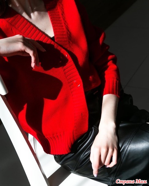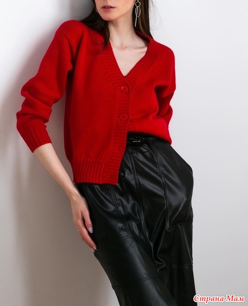 Костюм красный. Связан из итальянского хлопка 1500м в 4 нити на машине Бразер 5 кл. Юбка зауженая к низу, пояс присобран на широкую резинку 2*2. Укороченый карди прямого силуэта со спущеным плечом. Читать полностью