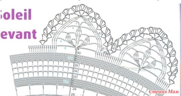 Фестоны по схеме вяжутся с отрывом нити, но я вязала БЕЗ отрыва. Вывязав до верхушки фестон я спускалась соединительными петлями по боковой части (главное не стянуть сторону) и далее продолжала этими же петлями вязать по петлям предыдущего ряда до места начала следующего фестона. Думаю понятно объяснила.