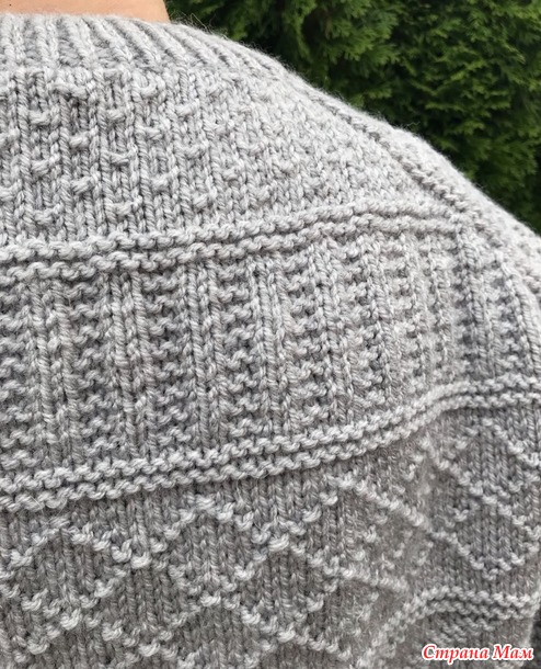 и я нашла вариант, в котором есть и японское плечо и структурные узоры как у гернсийских свитеров...есть одно отличие - у свитеров острова Гернси вывязывается ластовица...а мой свитер вяжется без ластовицы.