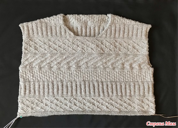 Для тела свитера в длину провязала все схемы узоров, а рукава укоротила на один узор. В этом изделии для меня было новым - японское плечо и закрытие петель итальянским способом.